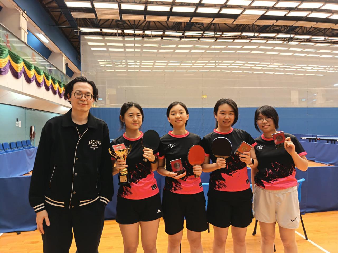 On 20 December 2025, our table tennis team members—including 6M Tong Yuk Ying Joyce, 6M Ng Man Chin, 5M Fung Cheuk Chi Jessie, and 5M Cheung Joy Lam—participated in the knock-out finals of the Inter-school Table Tennis Competition Division Two 2025-2026 Girls A Grade, held by the Schools Sports Federation of Hong Kong, China, at Lai Chi Kok Park Sports Centre. After several rounds of fierce competition, they secured second runner-up. Congratulations!